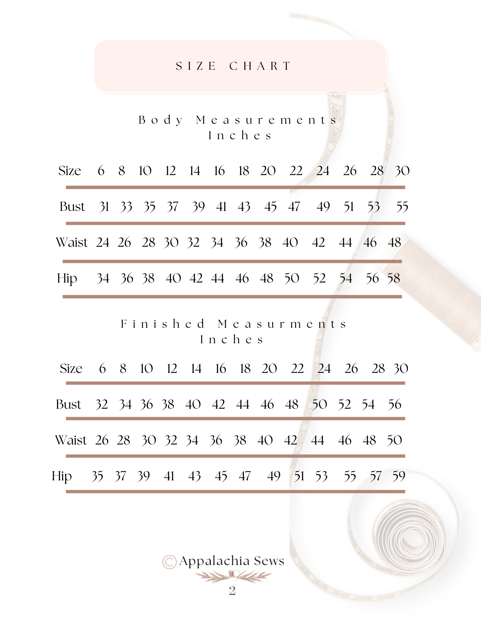 Sizes 6–30 | Bust 31"–55"