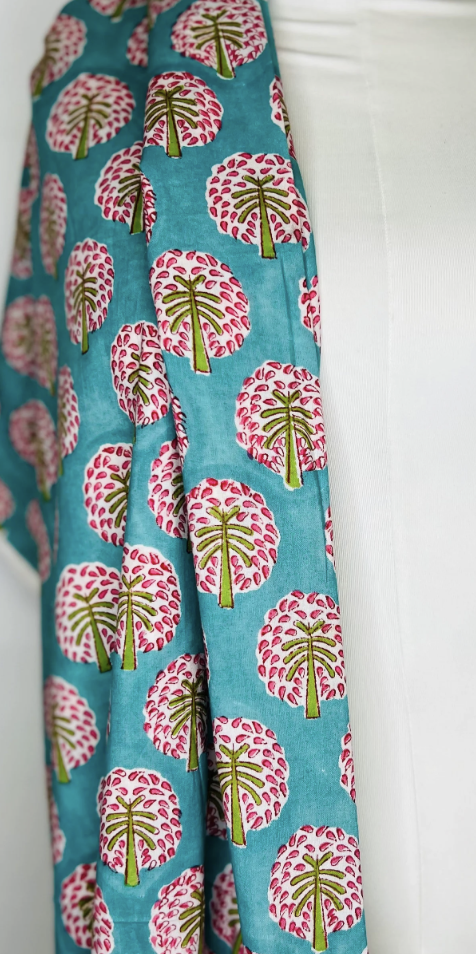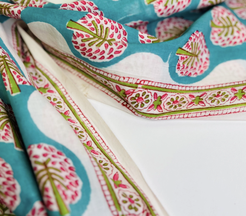 Color: Teal with hand block print border